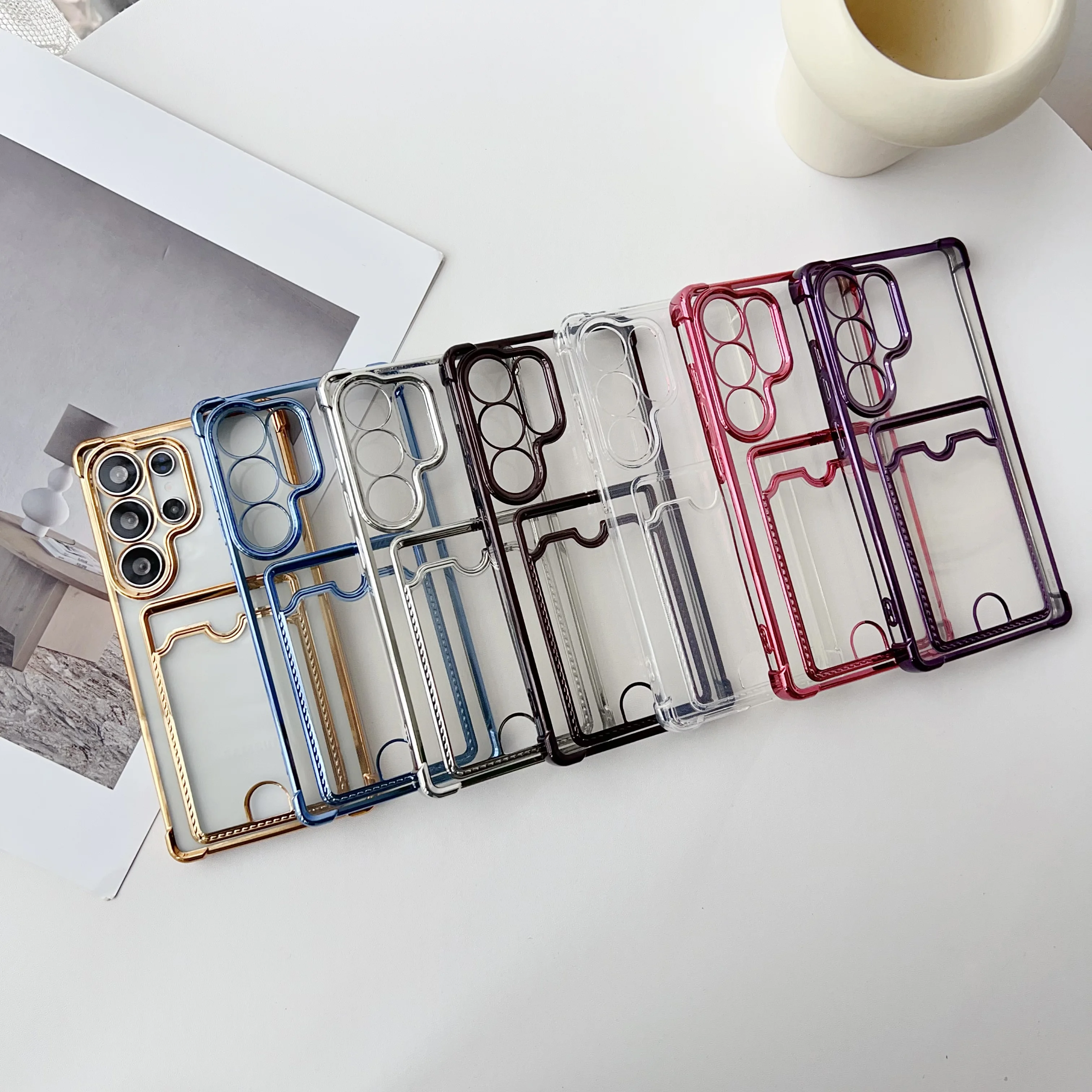 Étui transparent portefeuille à poche pour cartes pour Samsung Galaxy S25 S24 FE S23 S22 S21 S20 S10 Plus Ultra A55 A56 Note 20 Ultra coque plaquée